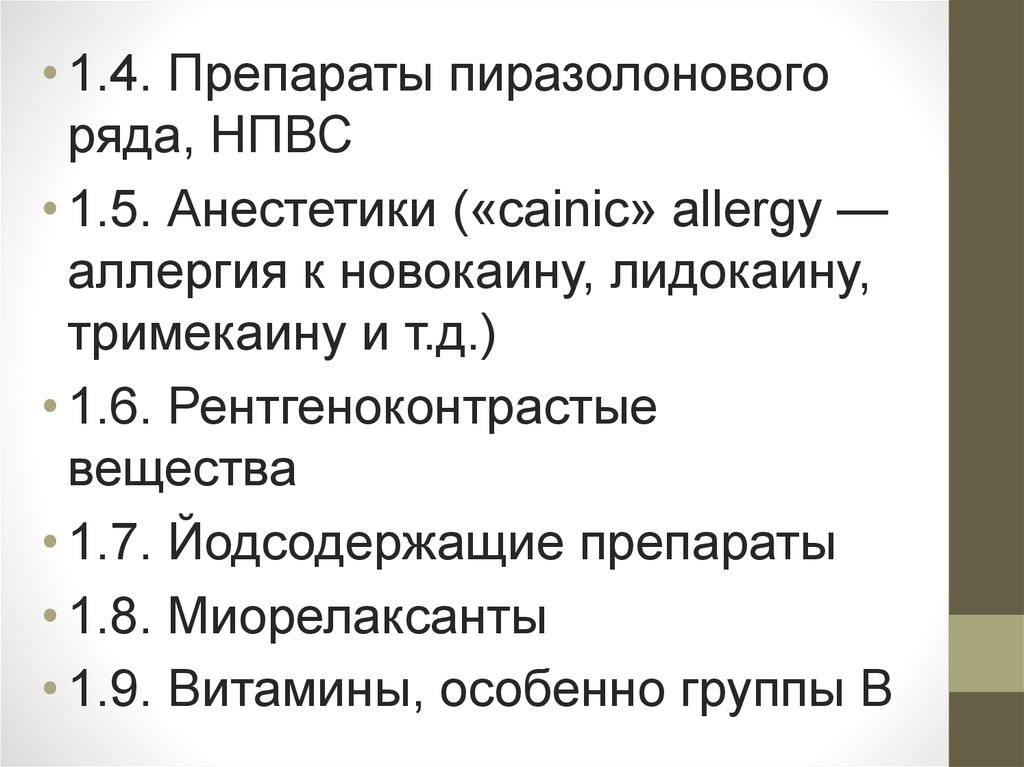 • 1.5. Анестетики («cainic» allergy —