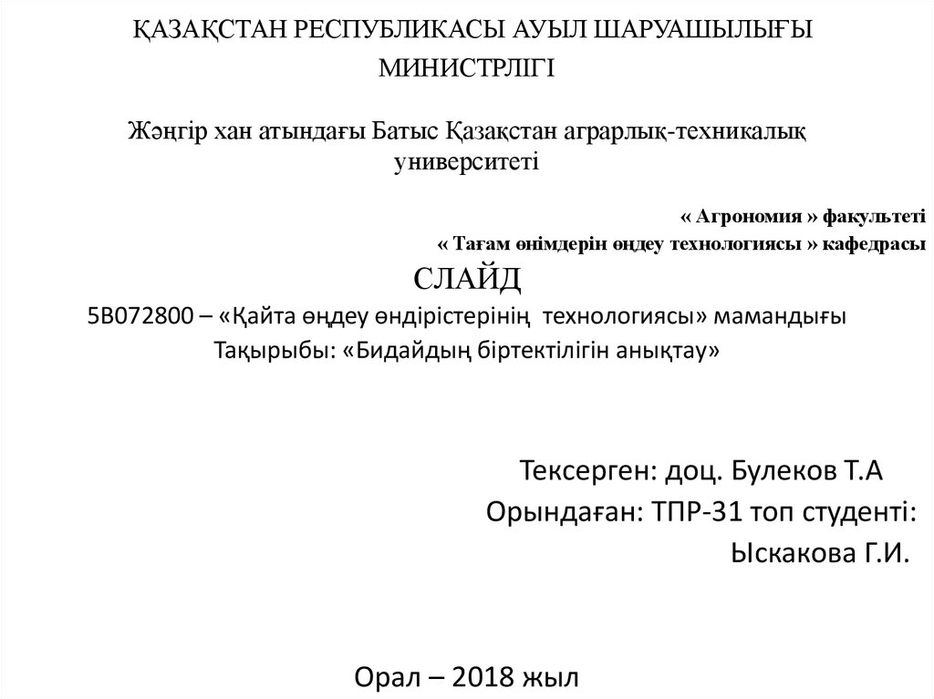 1. ҚАЗАҚСТАН РЕСПУБЛИКАСЫ АУЫЛ ШАРУАШЫЛЫҒЫ МИНИСТРЛІГІ Жәңгір хан атындағы Батыс Қазақстан аграрлық-техникалық университеті
