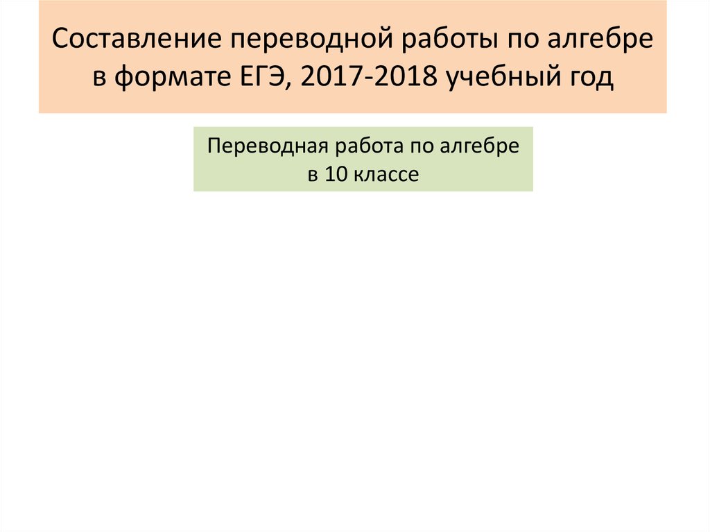 Составление переводной работы по алгебре в формате ЕГЭ, 2017-2018 учебный год