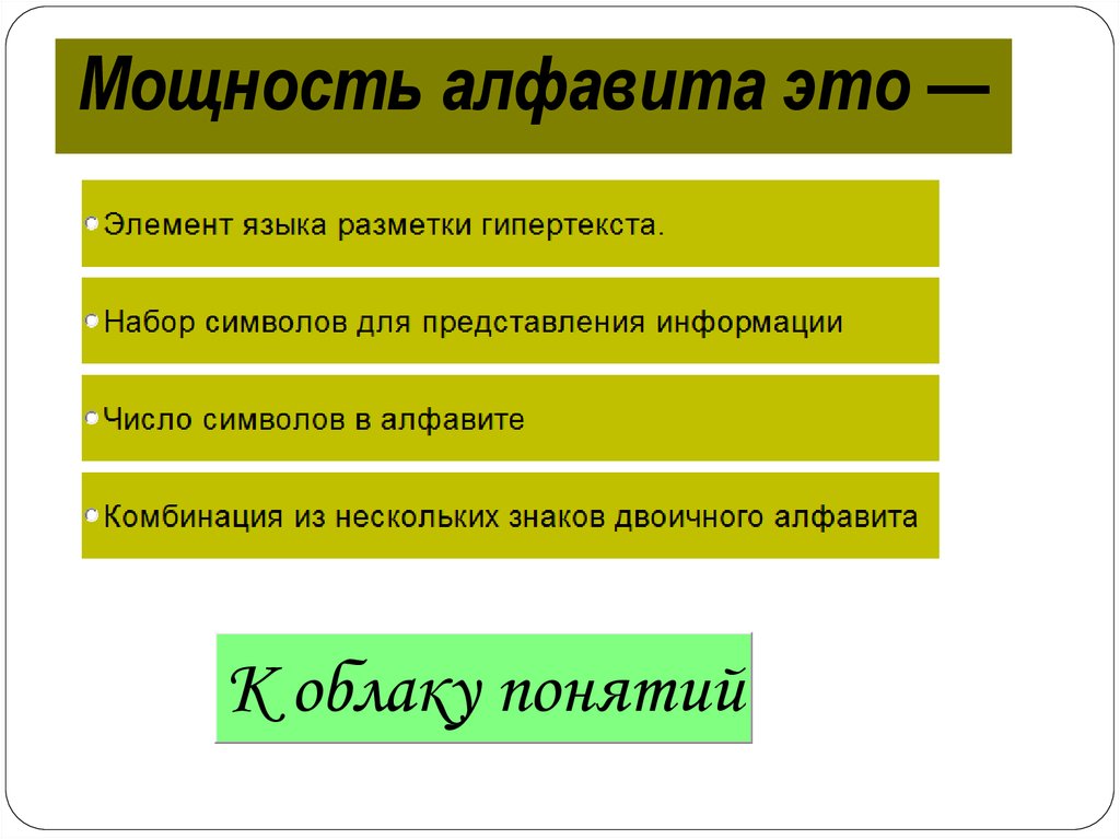 Мощность алфавита это —К облаку понятий