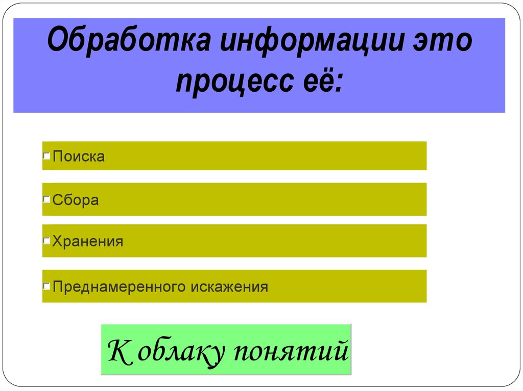 Обработка информации этопроцесс её: