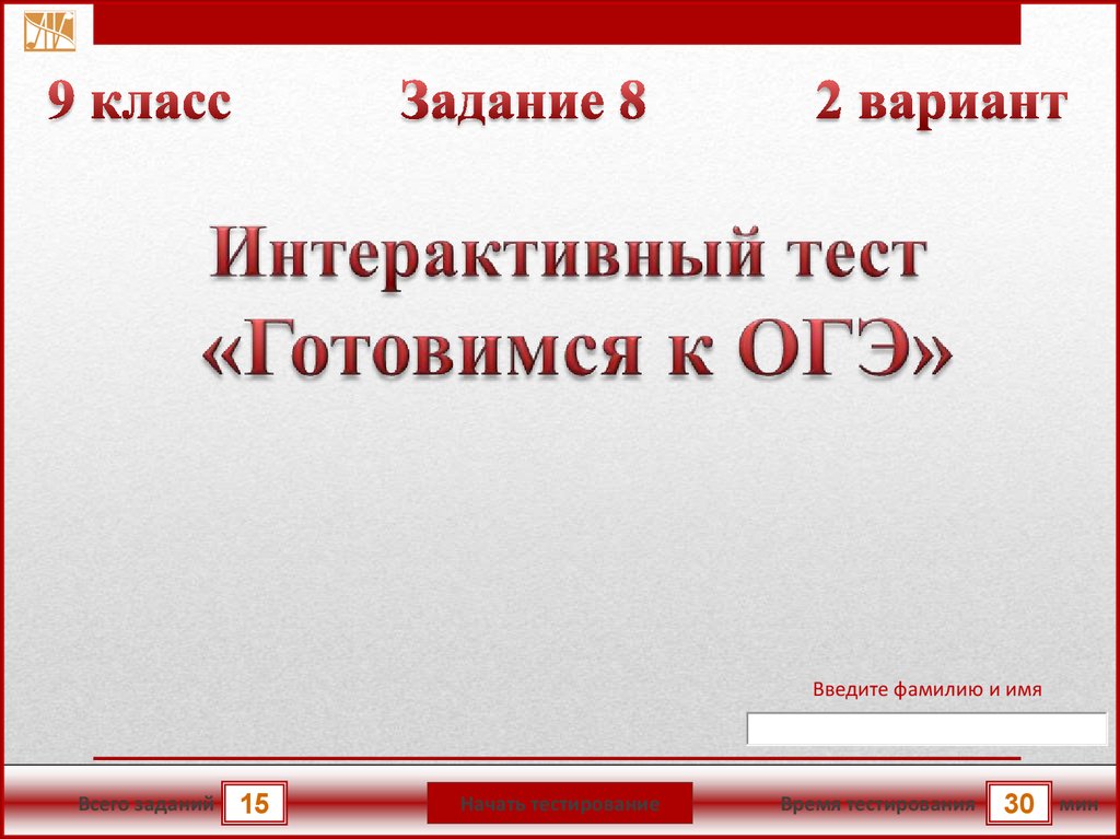 Интерактивный тест. Готовимся к ОГЭ. 2 вариант