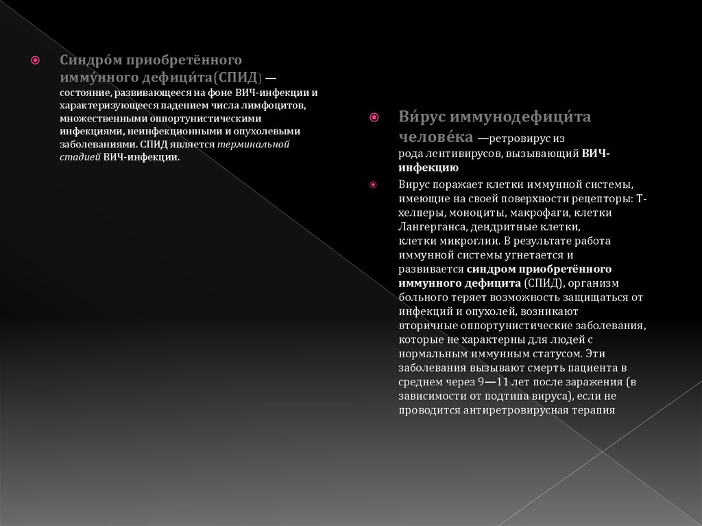 Синдро́ м приобретённогоимму́ нного дефици́ та(СПИД) —