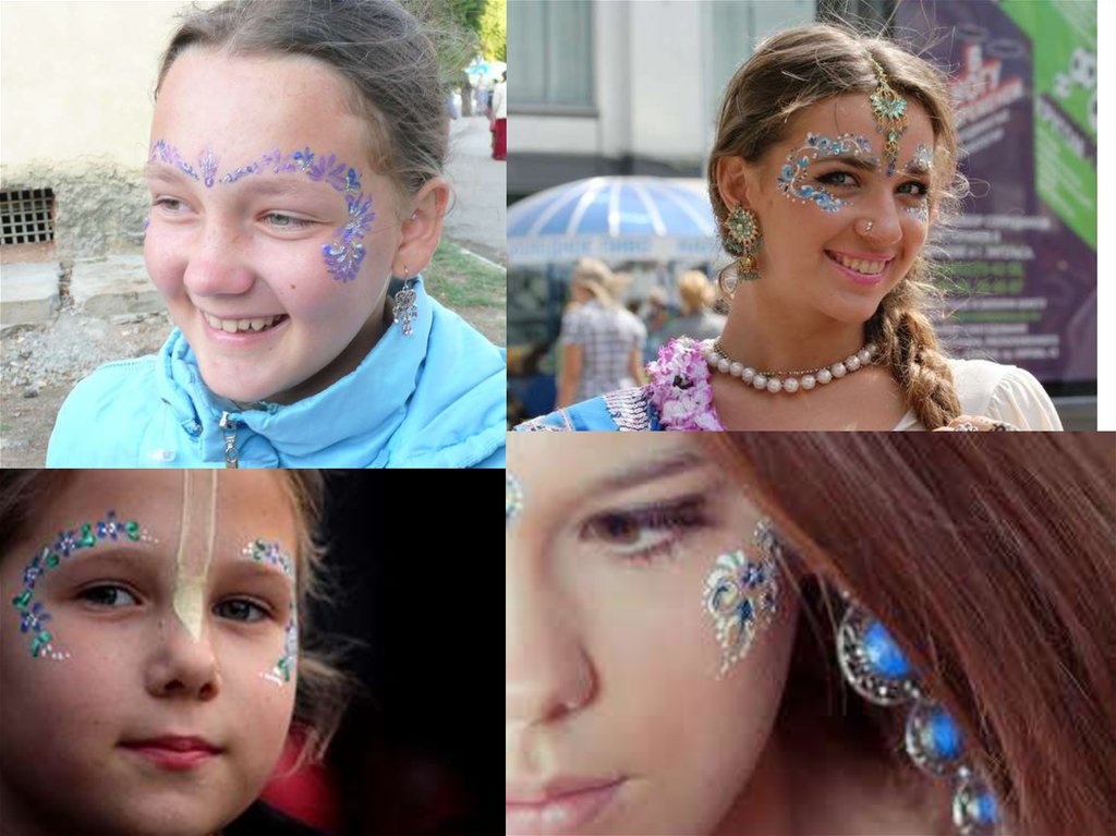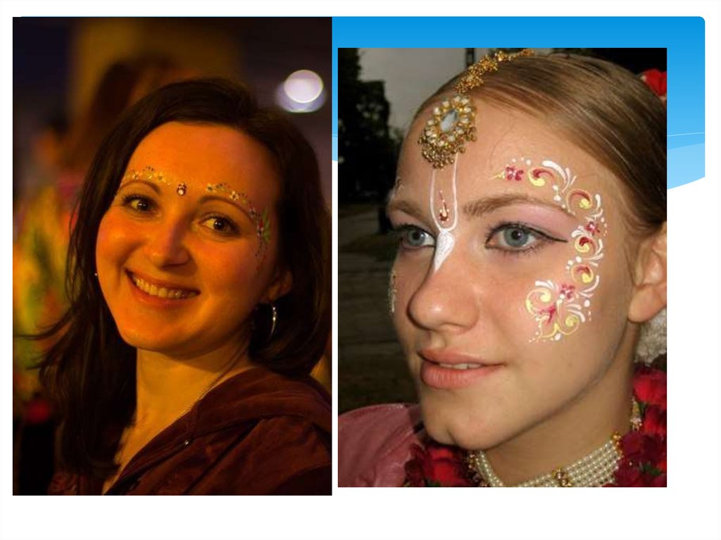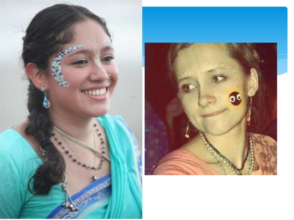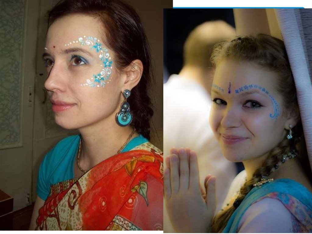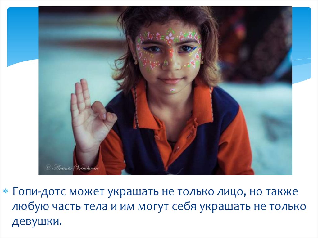 Гопи-дотс может украшать не только лицо, но такжелюбую часть тела и им могут себя украшать не только