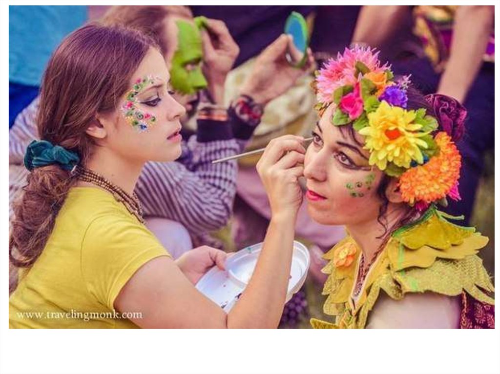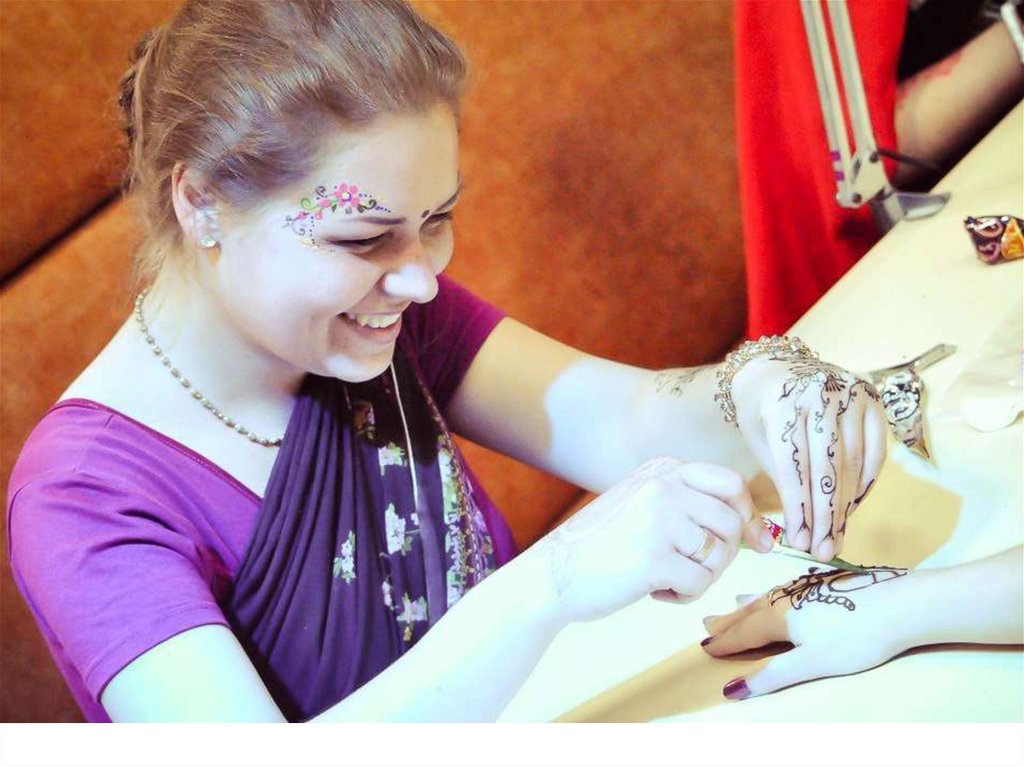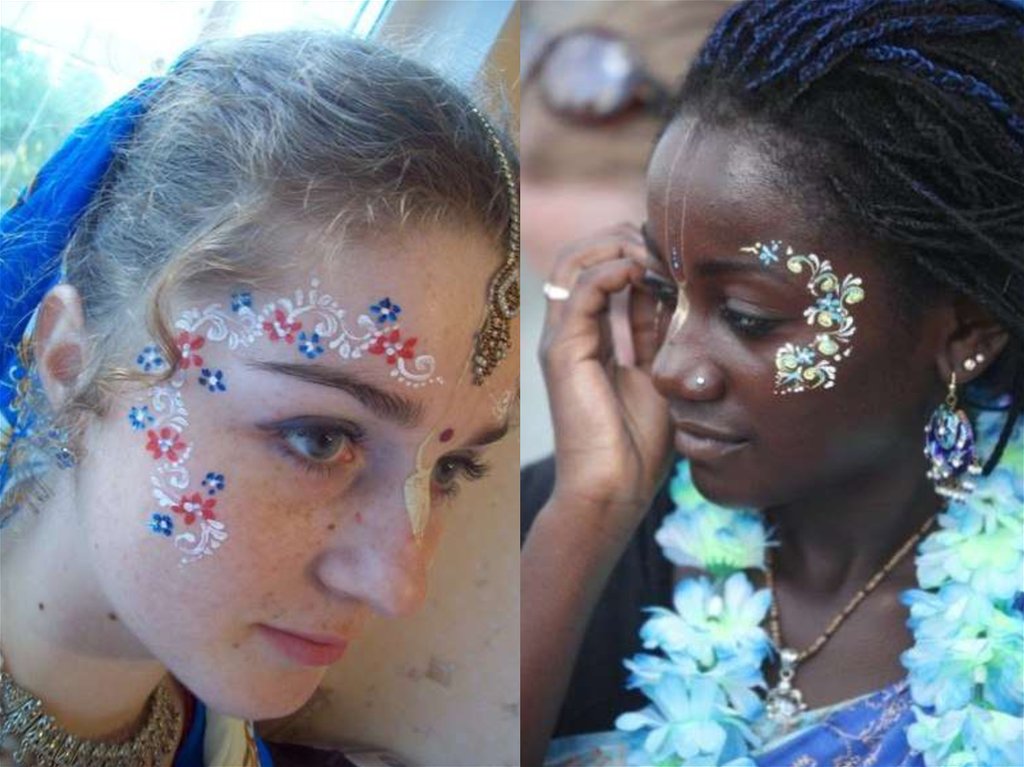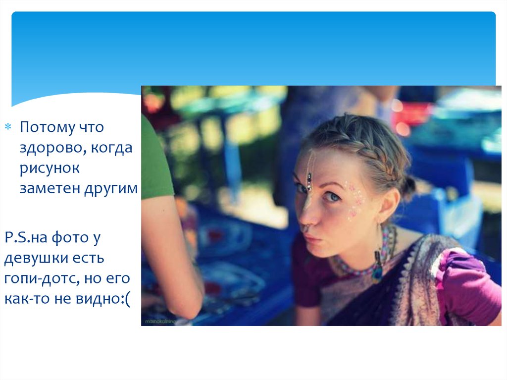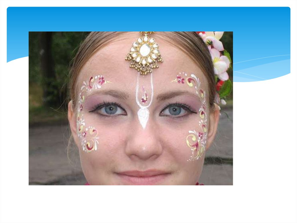 Гопи-дотс может украшать не только лицо, но такжелюбую часть тела и им могут себя украшать не только