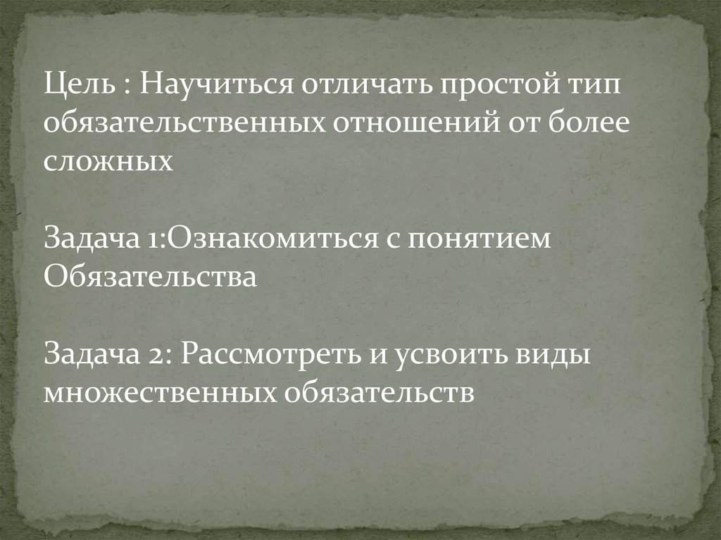 Цель : Научиться отличать простой типобязательственных отношений от более