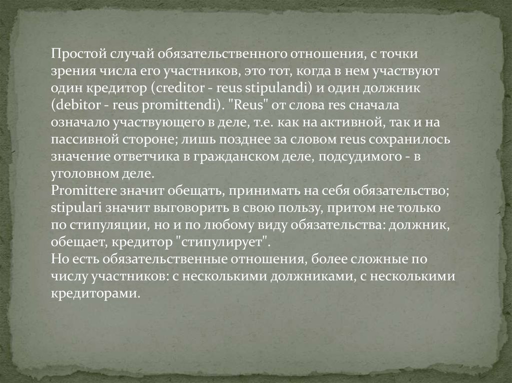 (debitor - reus promittendi). "Reus" от слова res сначала