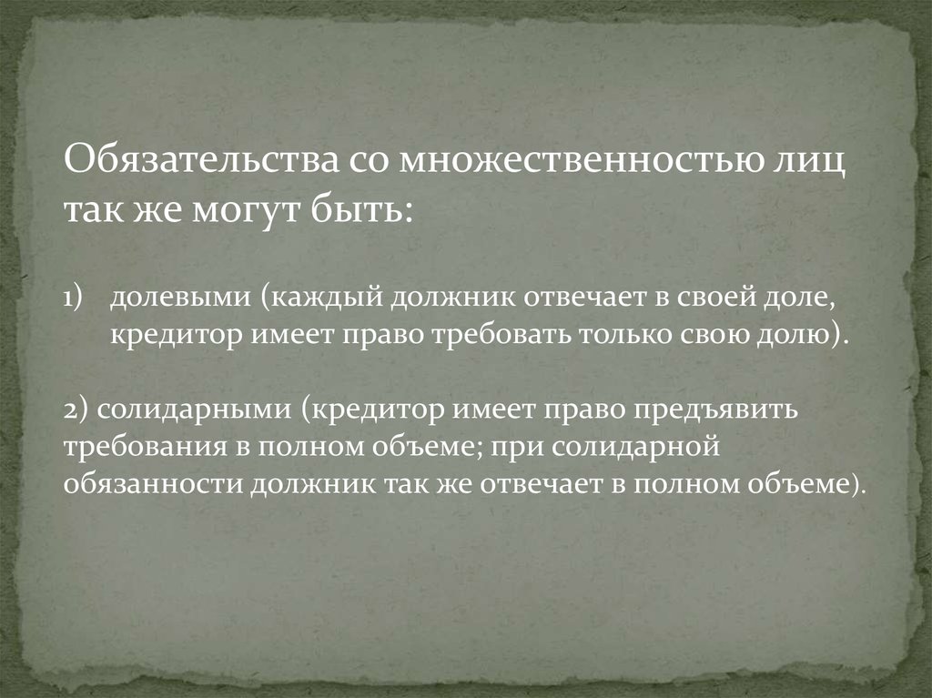 говорили: корреальных, теперь говорят солидарных) кредиторов или к