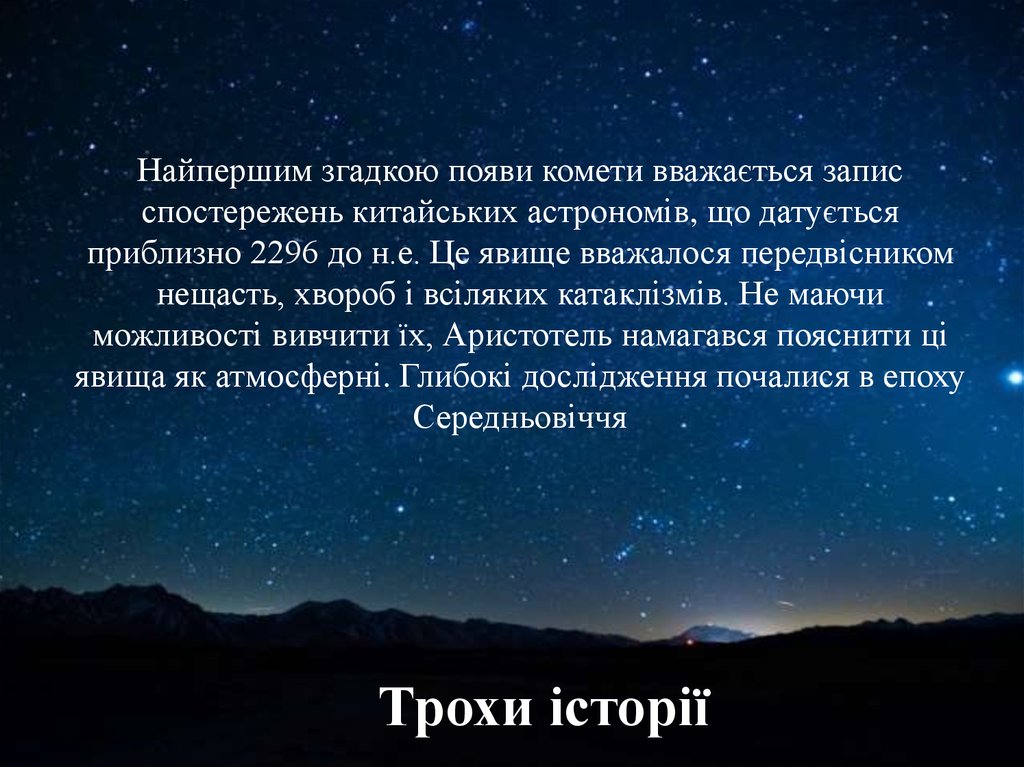 Найпершим згадкою появи комети вважається записспостережень китайських астрономів, що датується