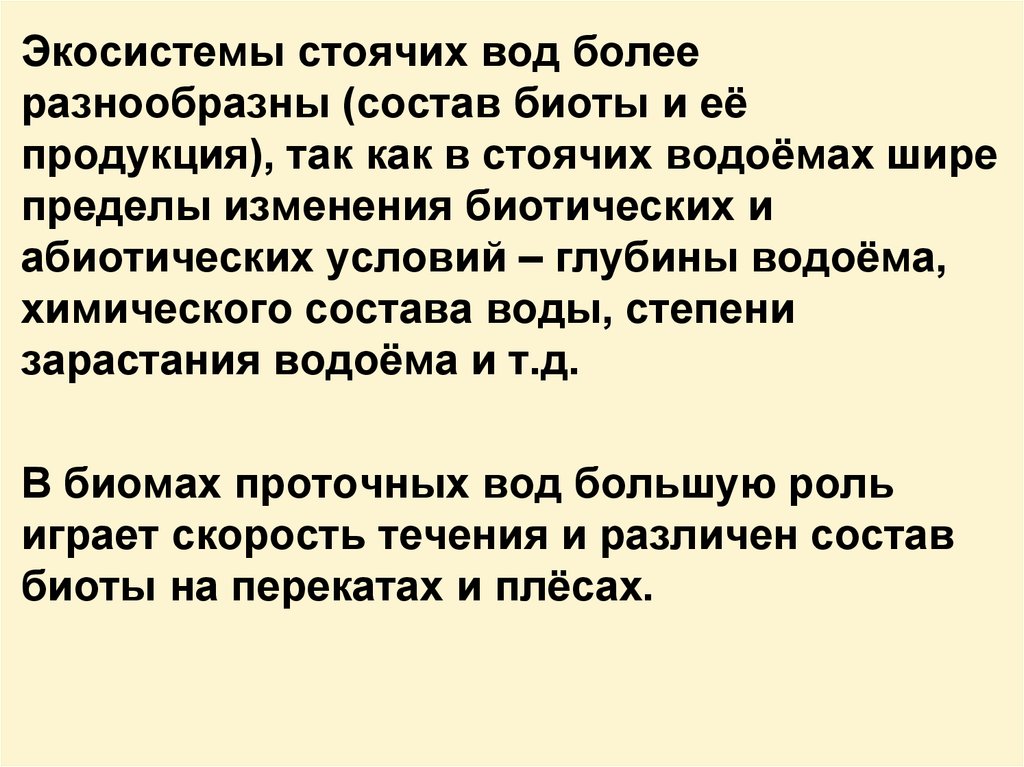 Экосистемы стоячих вод болееразнообразны (состав биоты и её