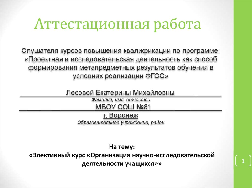 Аттестационная работа. Элективный курс «Организация научно-исследовательской деятельности учащихся»