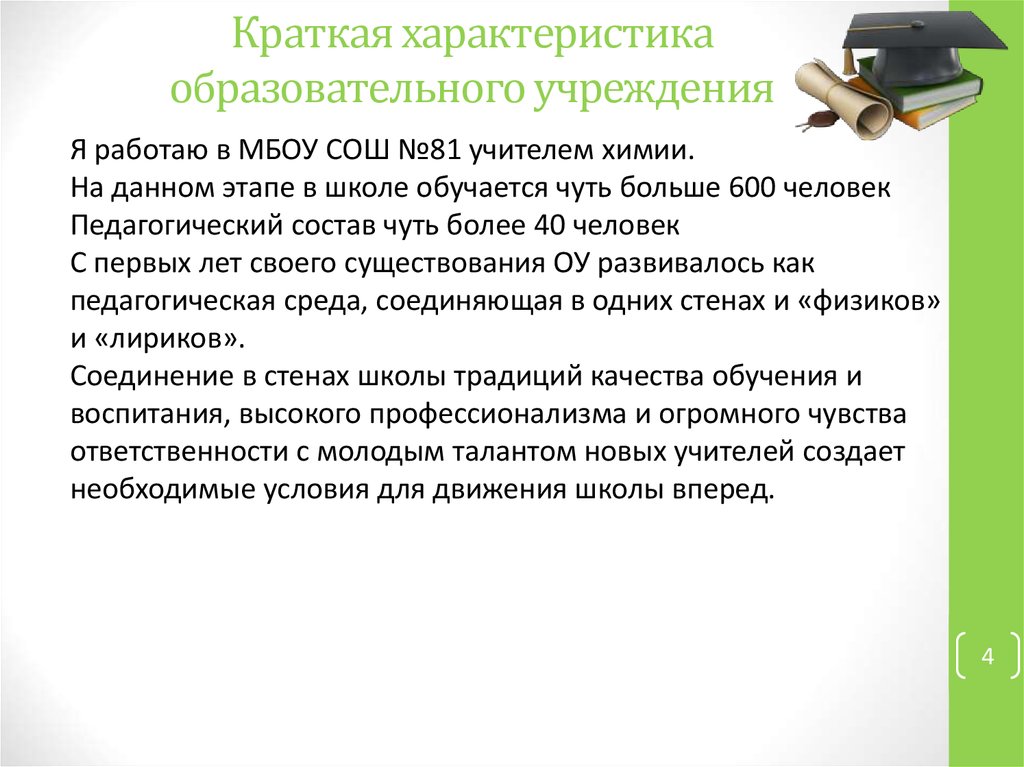 Я работаю в МБОУ СОШ №81 учителем химии.