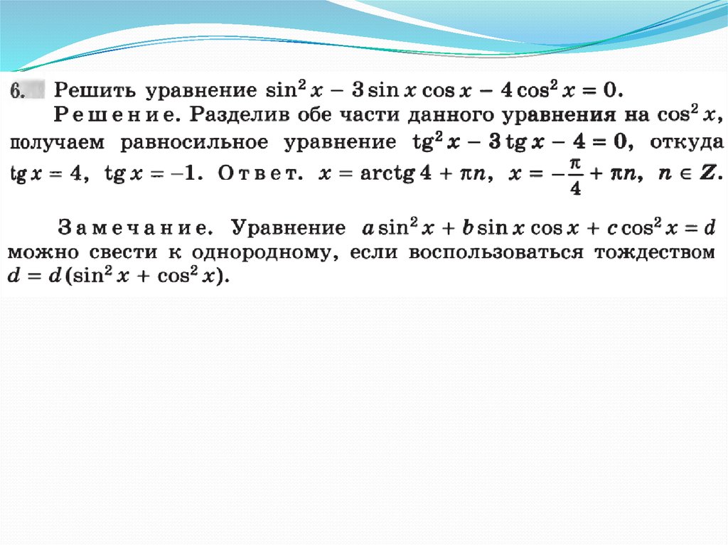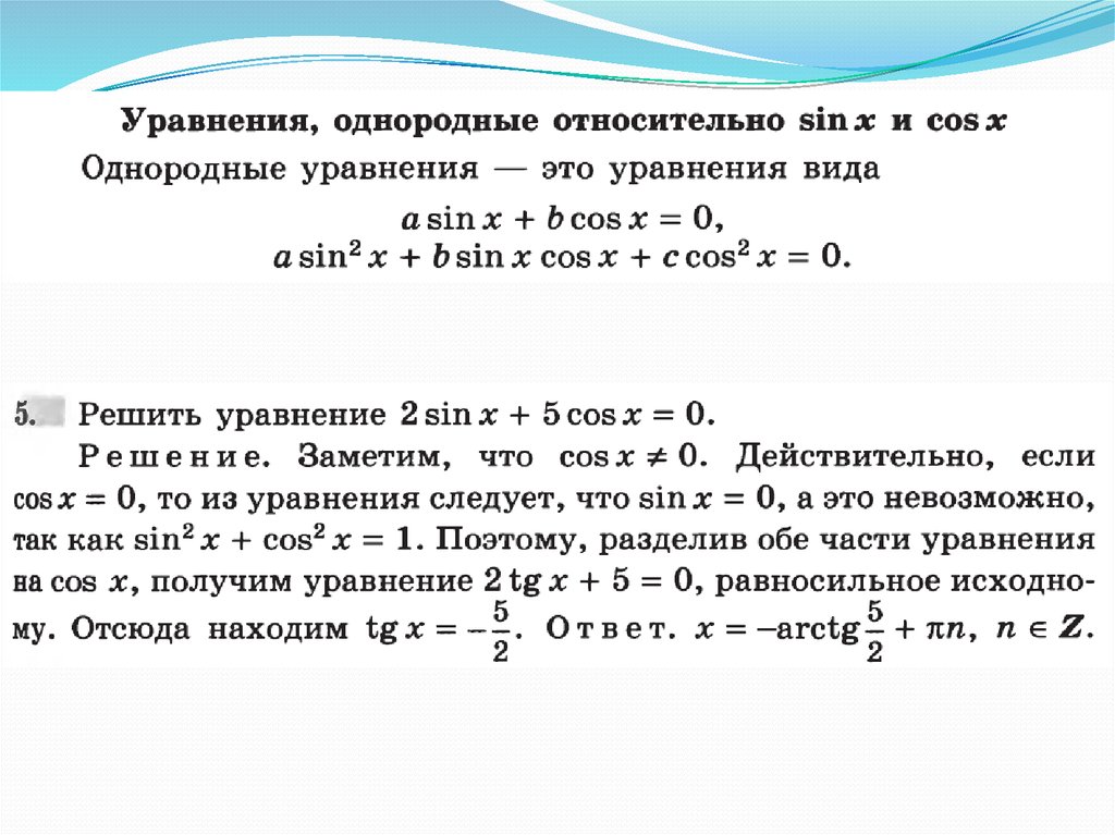 Тригонометрические уравнения. Однородные тригонометрические уравнения