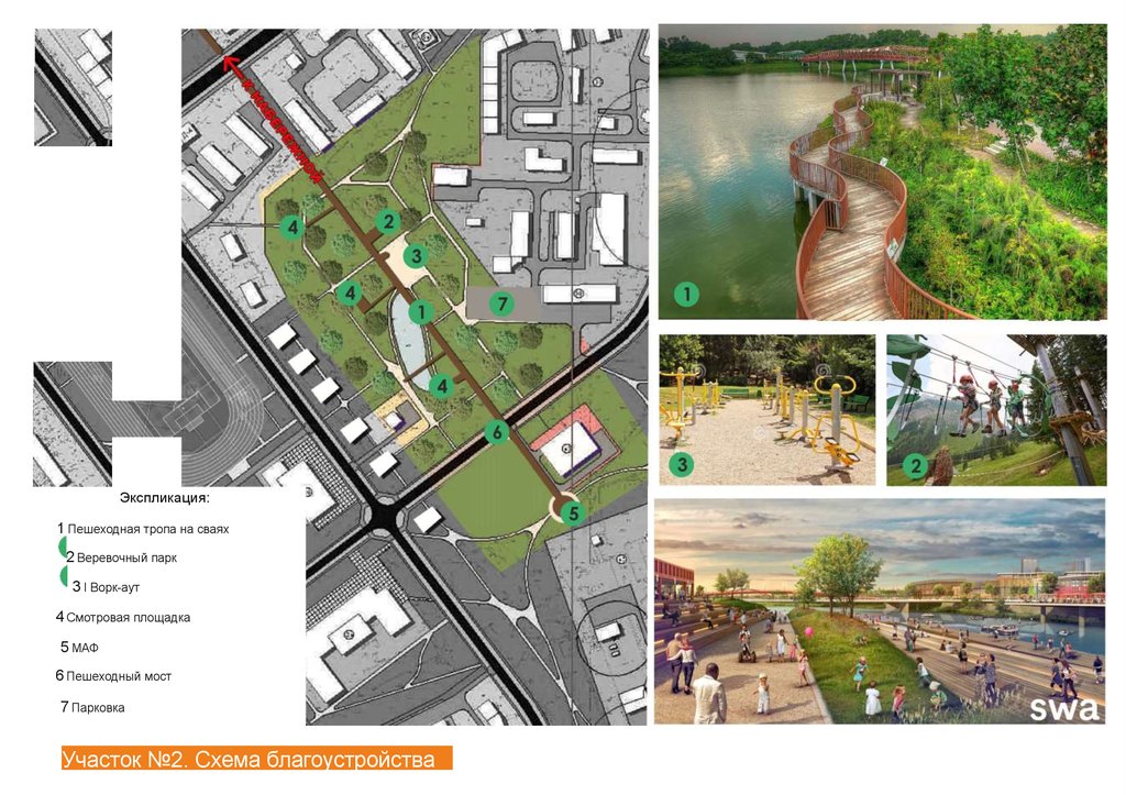 Экспликация:1 Пешеходная тропа на сваях