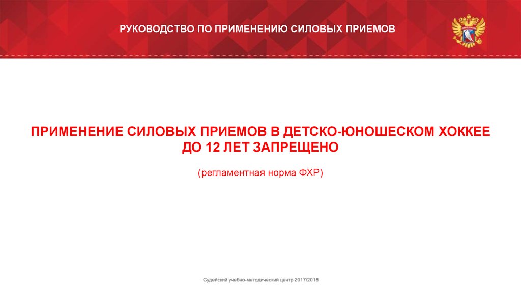 РУКОВОДСТВО ПО ПРИМЕНЕНИЮ СИЛОВЫХ ПРИЕМОВПРИМЕНЕНИЕ СИЛОВЫХ ПРИЕМОВ В ДЕТСКО-ЮНОШЕСКОМ ХОККЕЕ