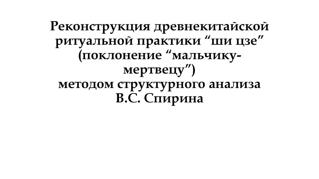Реконструкция древнекитайской ритуальной практики “ши цзе” методом структурного анализа В.С. Спирина