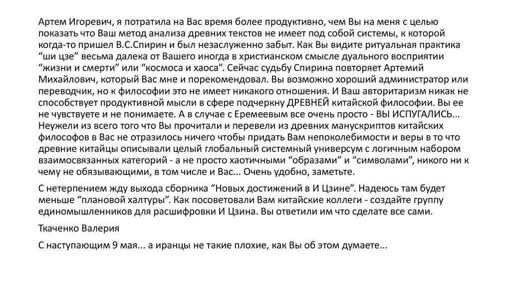 Артем Игоревич, я потратила на Вас время более продуктивно, чем Вы на меня с цельюпоказать что Ваш метод анализа древних текстов не имеет под собой системы, к которой