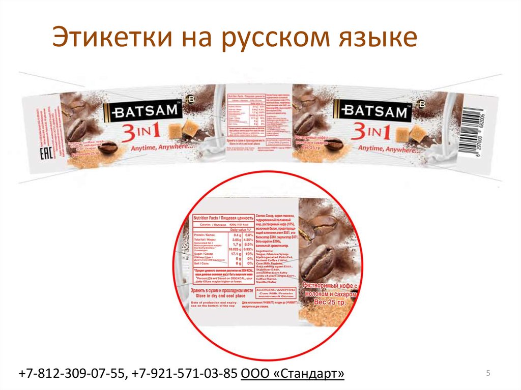 Этикетки на русском языке+7-812-309-07-55, +7-921-571-03-85 ООО «Стандарт»