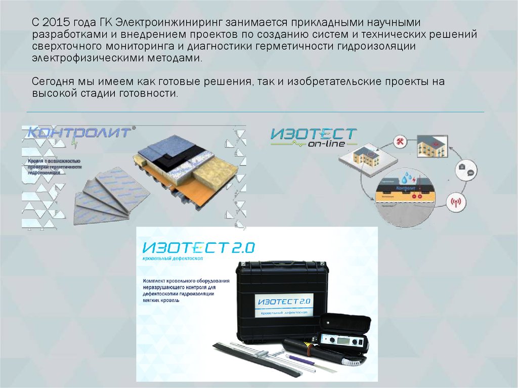 С 2015 года ГК Электроинжиниринг занимается прикладными научнымиразработками и внедрением проектов по созданию систем и технических решений