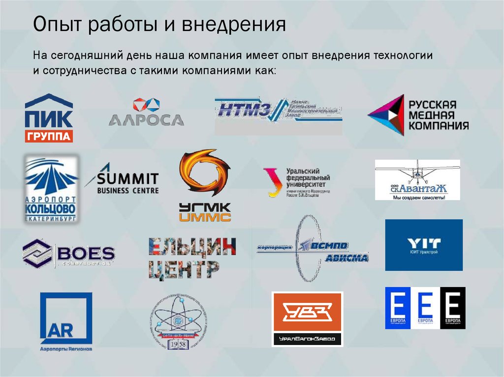 Опыт работы и внедренияНа сегодняшний день наша компания имеет опыт внедрения технологии