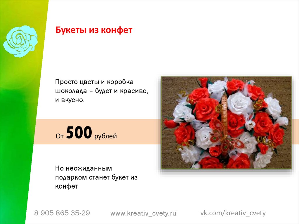 Мастерская Креатив. Изготовление свадебных аксессуаров, топиариев и букетов из конфет