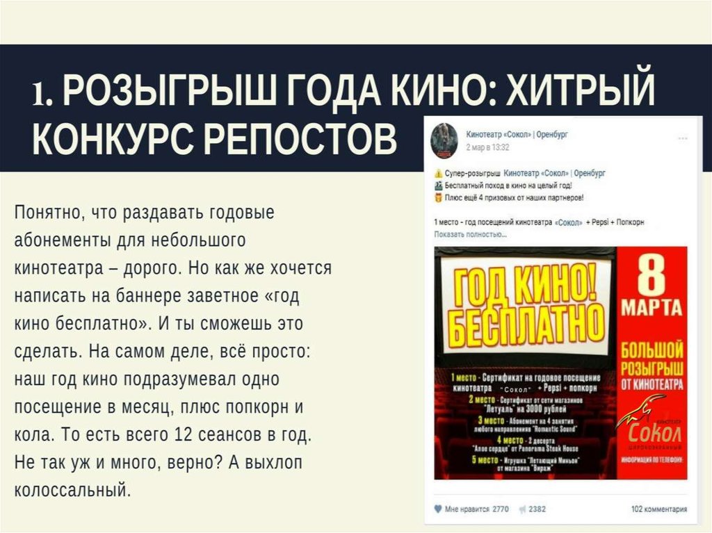 Как продвигать кинотеатр «Сокол» «ВКонтакте»