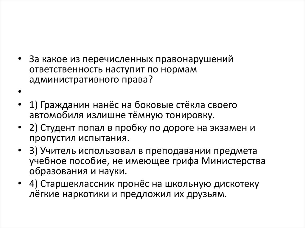 • За какое из перечисленных правонарушенийответственность наступит по нормам