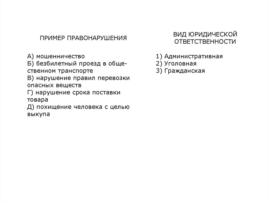 ответственности — ________(Д), так как наступает за совершение ________(Е).