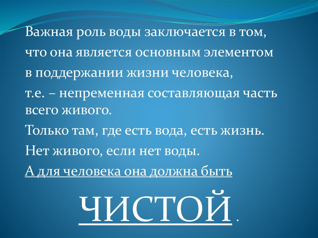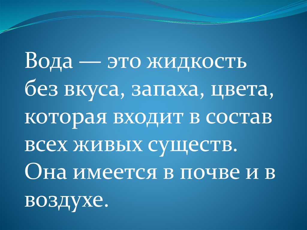 Вода — это жидкостьбез вкуса, запаха, цвета,
