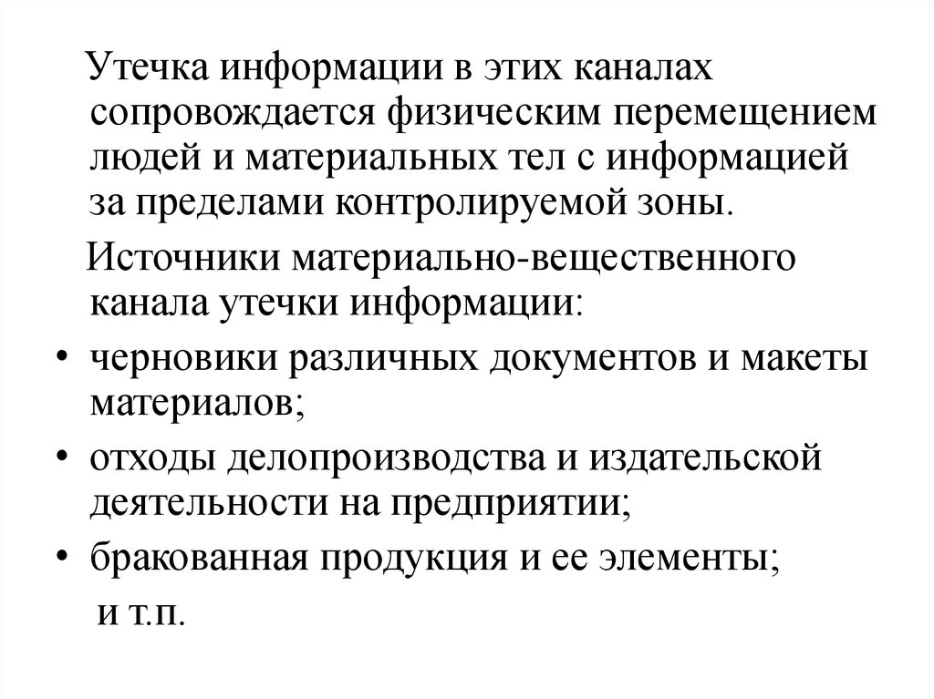 Утечка информации в этих каналахсопровождается физическим перемещением