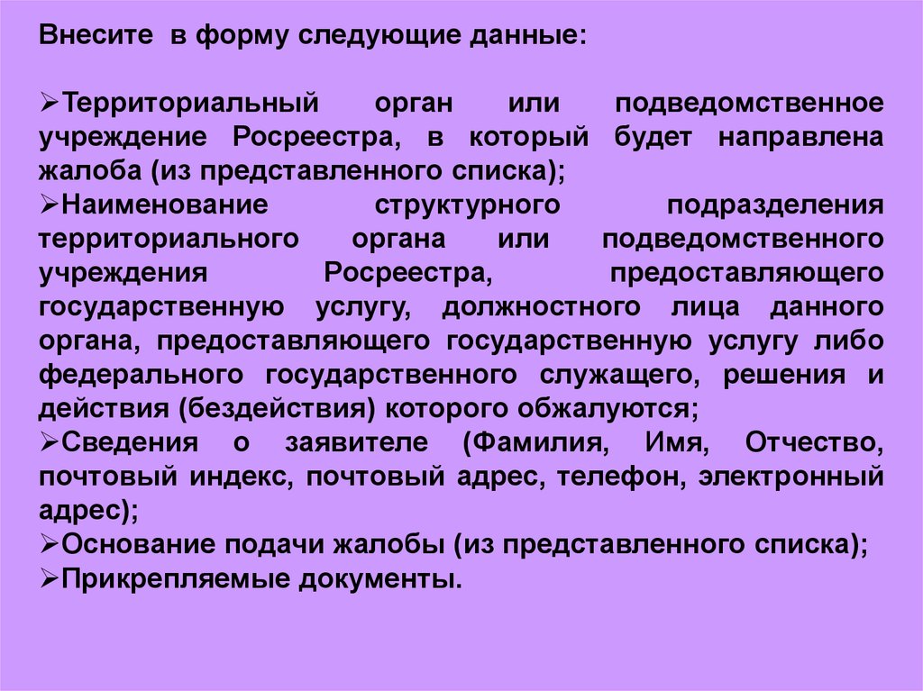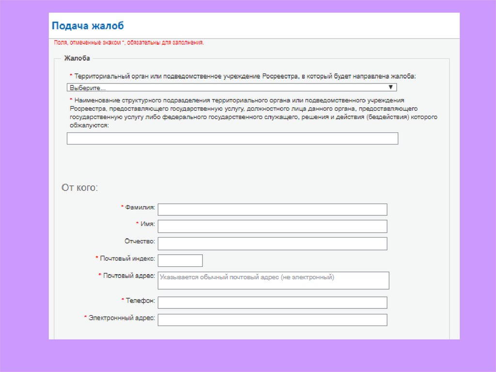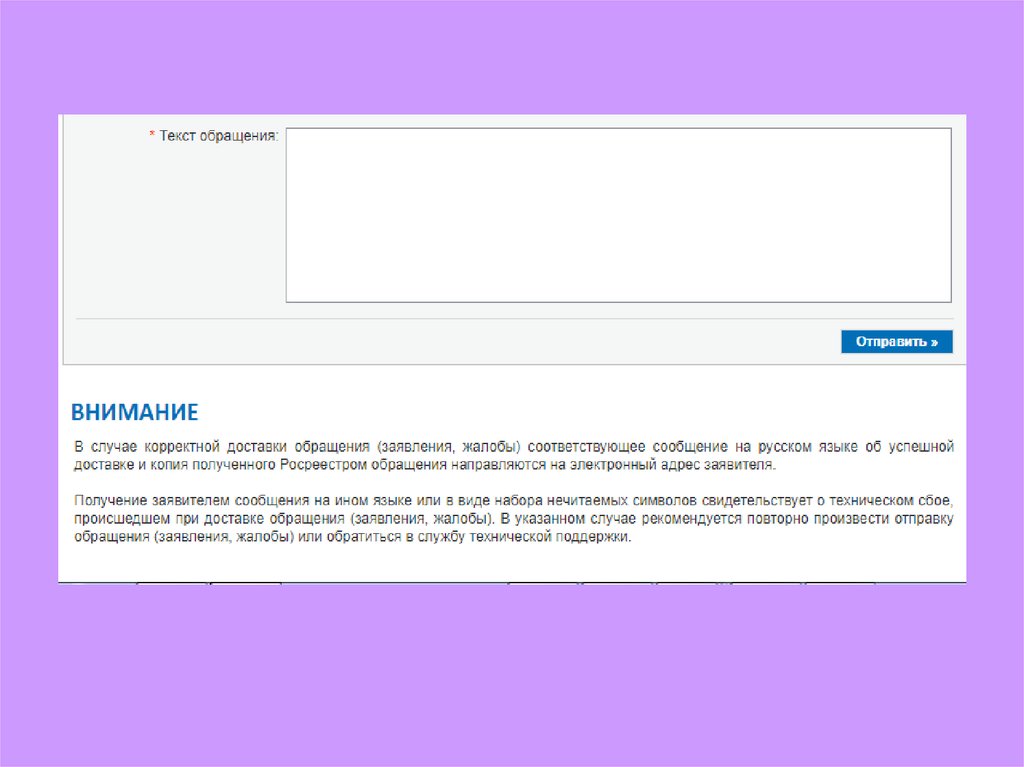 направления обращений и жалоб граждан в Росреестр в режиме online.