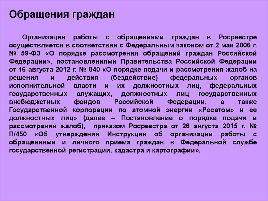 Обращения гражданОрганизация работы с обращениями граждан в Росреестре