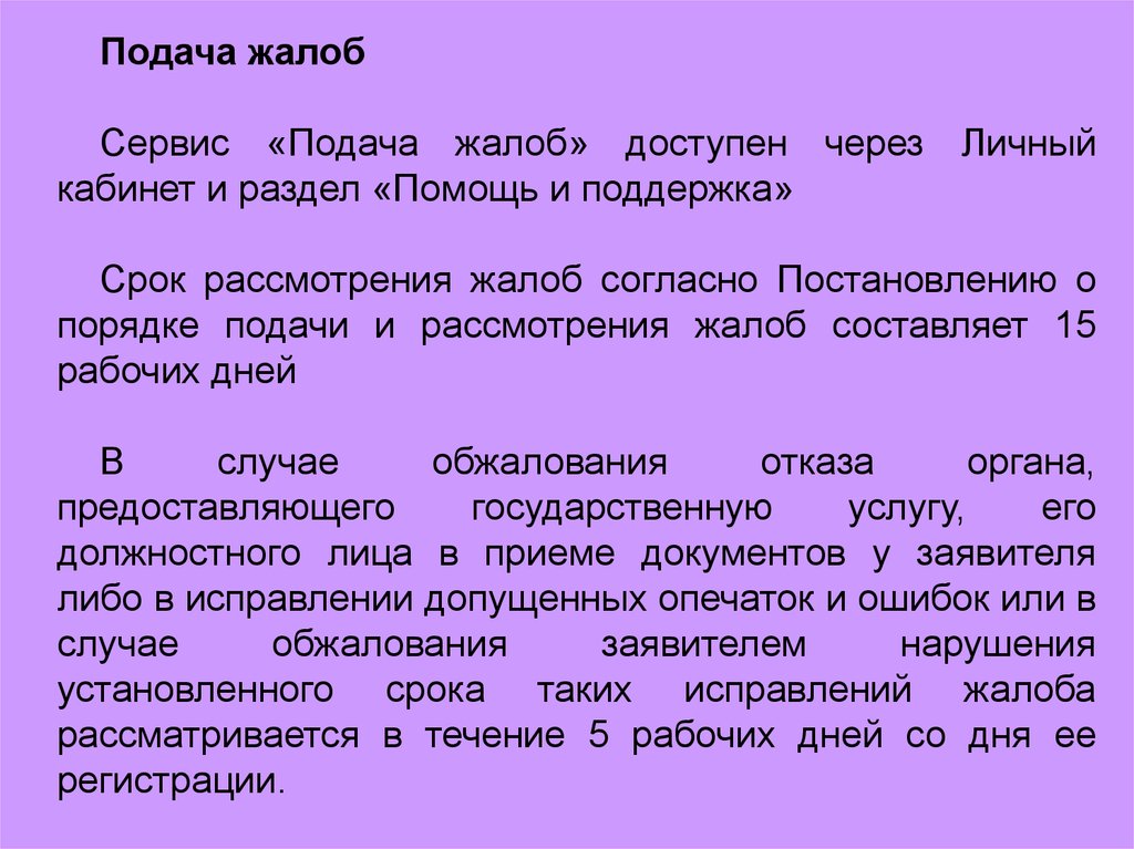 Подача жалобСервис «Подача жалоб» доступен через Личный