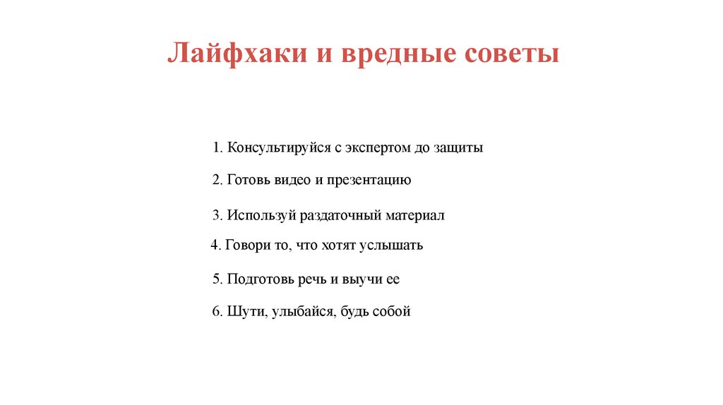 Лайфхаки и вредные советы1. Консультируйся с экспертом до защиты