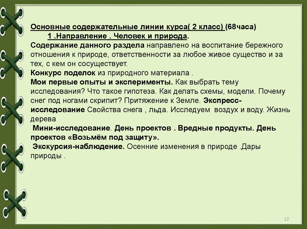 Основные содержательные линии курса( 2 класс) (68часа)1 .Направление . Человек и природа.