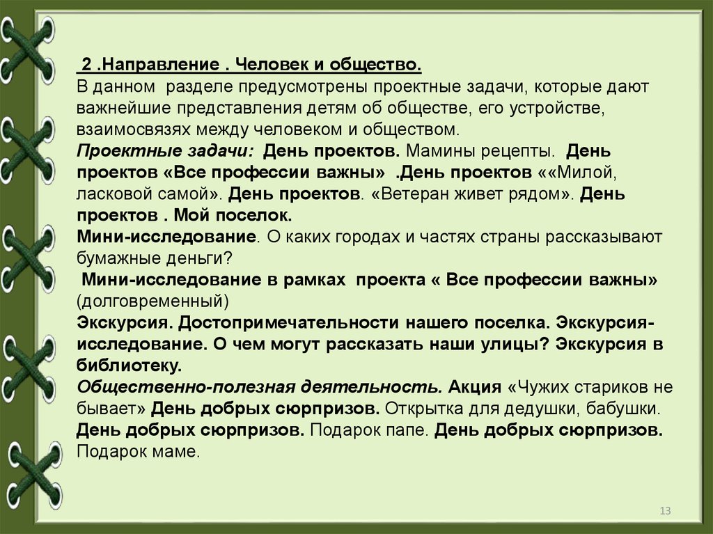 2 .Направление . Человек и общество.В данном разделе предусмотрены проектные задачи, которые дают