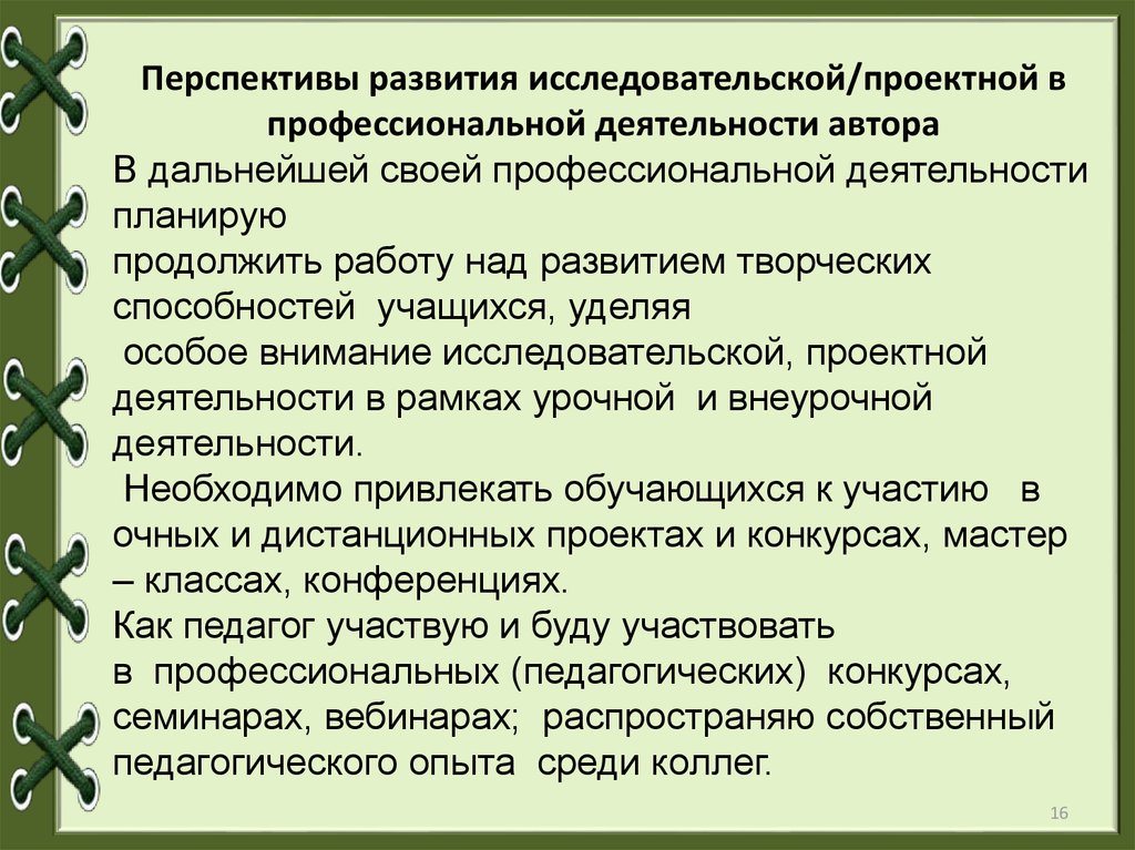 Перспективы развития исследовательской/проектной впрофессиональной деятельности автора