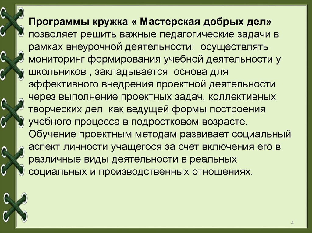 Данная аттестационная работа представляет собойрабочую программу кружка « Мастерская добрых