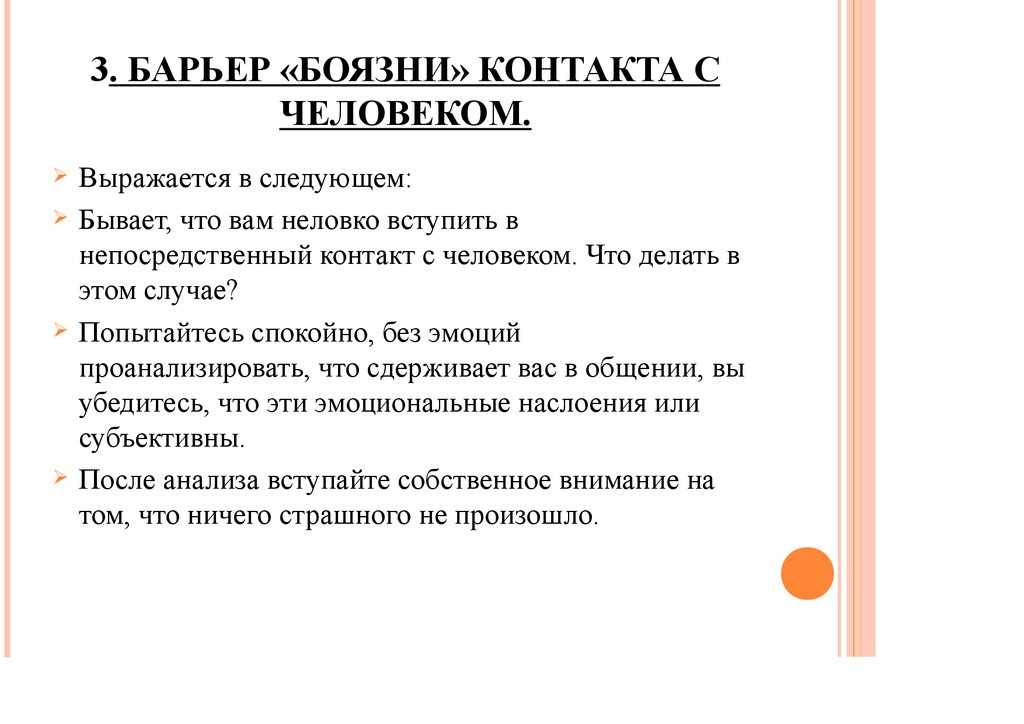 3. БАРЬЕР «БОЯЗНИ» КОНТАКТА СЧЕЛОВЕКОМ.