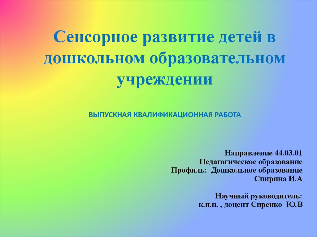 Сенсорное развитие детей в дошкольном образовательном учреждении