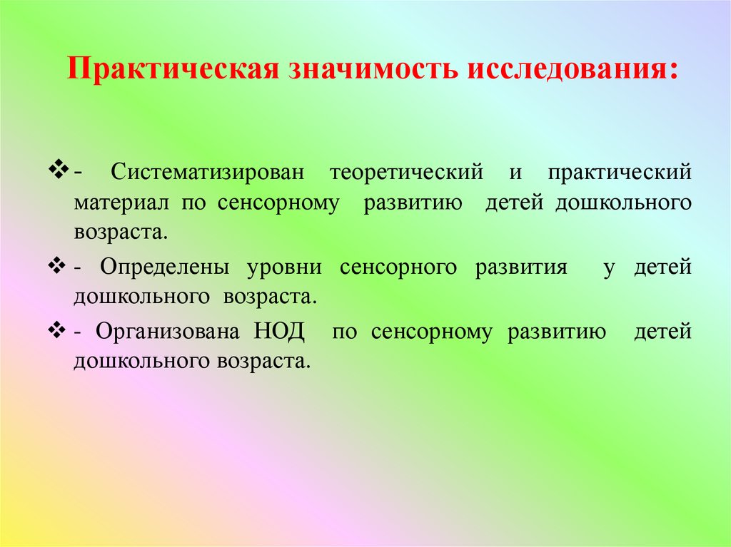 Предмет исследования: Сенсорное развитие дошкольников в ходе