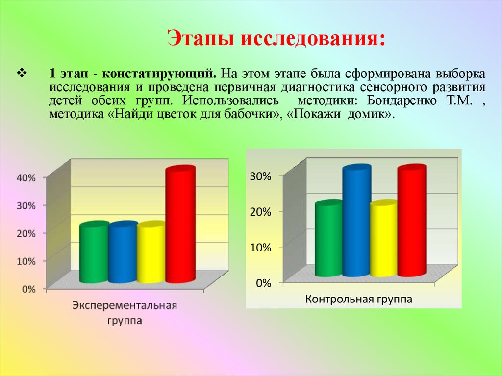 Этапы исследования:2 этап - формирующий, цель этапа: развитие сенсорных эталонов