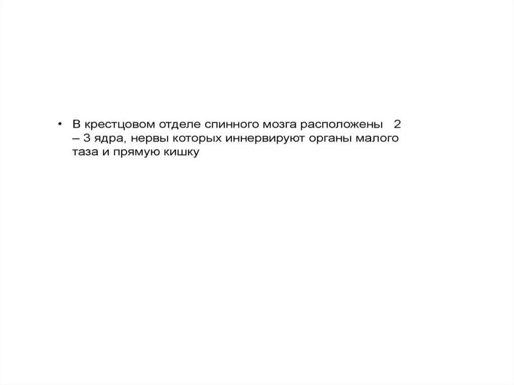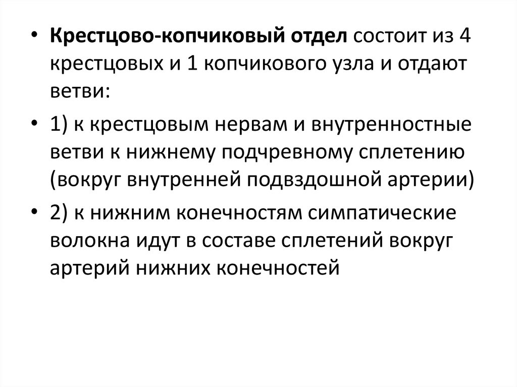 • Крестцово-копчиковый отдел состоит из 4крестцовых и 1 копчикового узла и отдают