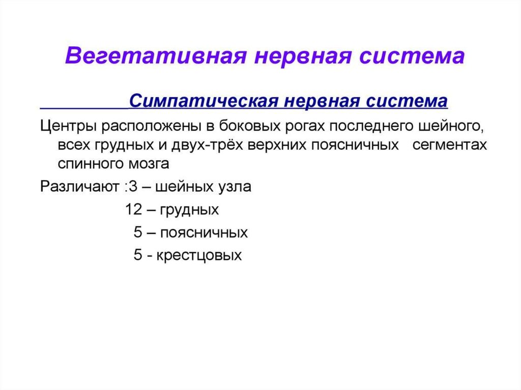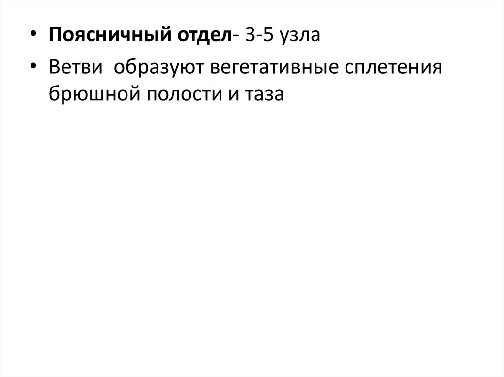 • Поясничный отдел- 3-5 узла• Ветви образуют вегетативные сплетения