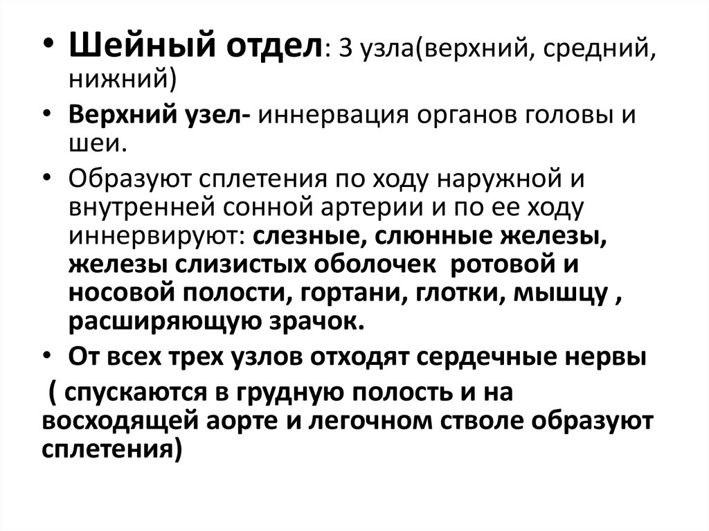 • Шейный отдел: 3 узла(верхний, средний,нижний)