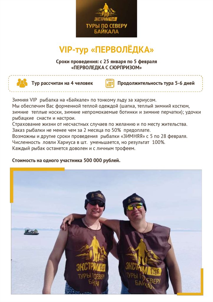 VIP-тур «ПЕРВОЛЁДКА»Сроки проведения: с 25 января по 5 февраля