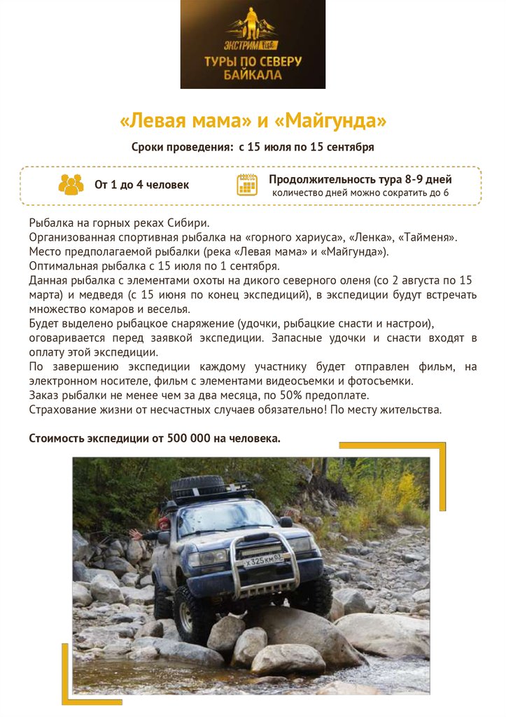 ЭкстримФиш КП. Услуги в сфере экстремального туризма по северу Байкала