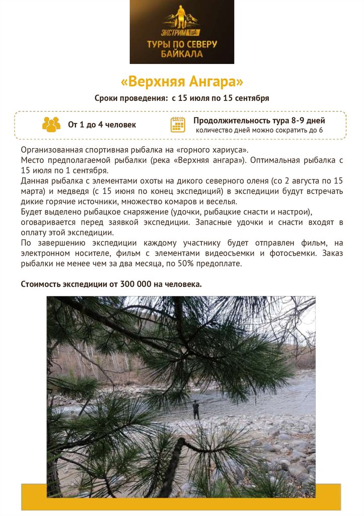 «Верхняя Ангара»Сроки проведения: с 15 июля по 15 сентября