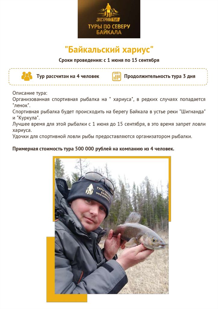 "Байкальский хариус"Сроки проведения: с 1 июня по 15 сентября