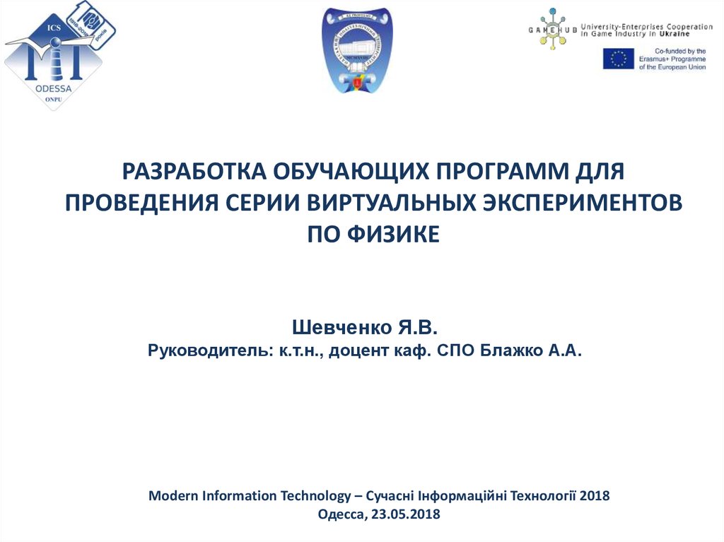 РАЗРАБОТКА ОБУЧАЮЩИХ ПРОГРАММ ДЛЯПРОВЕДЕНИЯ СЕРИИ ВИРТУАЛЬНЫХ ЭКСПЕРИМЕНТОВ